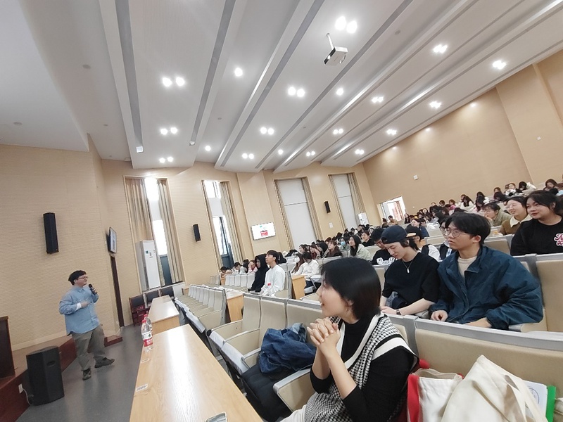 讲座的最后,朱嘉豪向大家分享了他自己创作的广告文案,以及文案的真实创作过程,并告诉同学们“想写好文案,不要被语法限制了创作,不要假大空,坚持真善美,坚持自己心中所爱!”朱嘉豪老师诙谐风趣的演讲风格,接二连三的抛梗互动,与同学们迅速拉近距离,引发共鸣,同学们也在笑声中更好地走进广告文案的世界,感受文字与创意的力量。