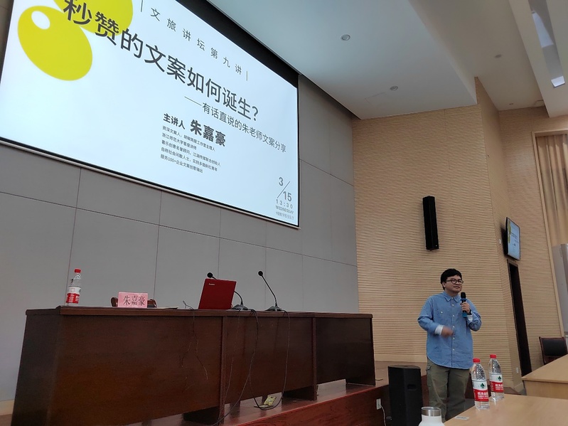 3月15日,胡椒简报工作室主理人朱嘉豪携公司团队受商学院旅游管理专业教师邀请,进行企业访校。访校期间,朱嘉豪老师为本校学生带来《秒赞的文案如何诞生?》文案专题讲座。讲座在我校1号教学楼报告厅举行,朱嘉豪老师以广告文案的创作为主线,结合商业经典案例与自己的实战经验,为学生开启文案创意的新大门。