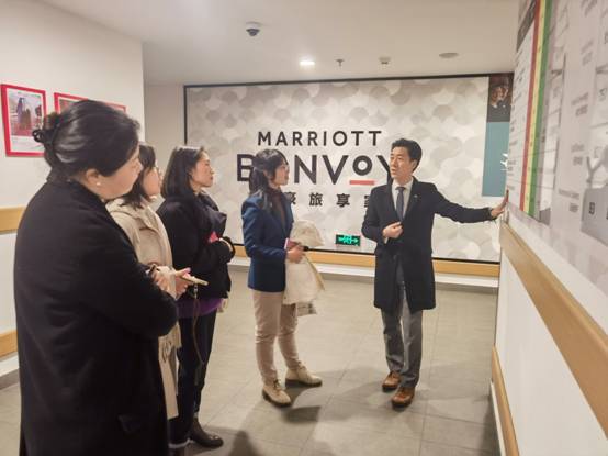 陈慕龙带领教师一行参观了金华万豪酒店的行政酒廊、客房、中西餐厅、健身中心、儿童乐园等对客服务区域及设施设备,并介绍了万豪集团的企业文化、发展历程、核心价值观、经营理念以及金华万豪酒店的发展概况。金华万豪酒店于2021年9月26日开业,是万豪国际集团旗下首个落户金华市区的万豪品牌酒店,秉持万豪国际集团“以人为本、追求卓越、勇于创新、诚实正直和服务世界”的核心价值观。